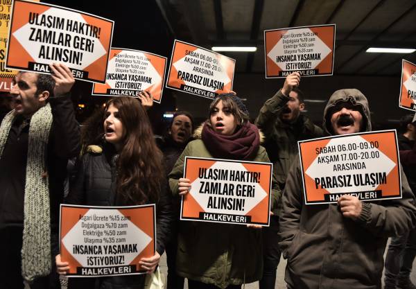 İstanbul Büyükşehir Belediyesi’nin ( İBB) tarafından ulaşıma yapılan yüzde 35 zamma karşı tepkiler çığ gibi büyüyor. Halkevleri ve TKH üyeleri çağrısıyla Mecidiyeköy Metrobüs durağında ark arkaya protesto düzenleyen İstanbullular, elektrikten doğalgaza ulaşma kadar peş peşe yapılan zamlara “Yeter artık” dedi.