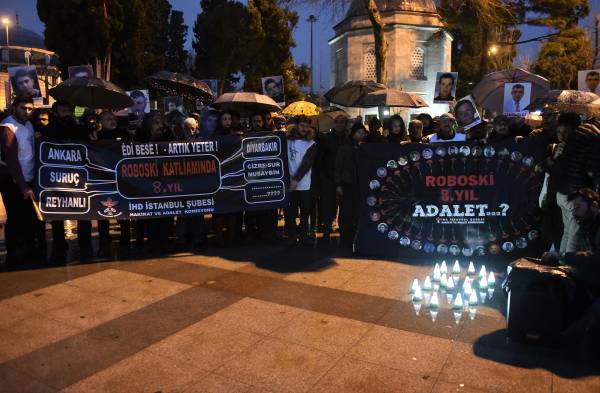 İnsan Hakları Derneği (İHD) İstanbul Şubesi, Roboskî Katliamı’nın 8’inci yıldönümünde yaşamını yitiren çoğu çocuk 34 Kürt genci Beşiktaş Barbaros Hayrettin Meydanı’nda andı. Anmaya İHD Eşbaşkanı Eren Keskin, HDP’li siyasetçiler ve çok sayıda siyasi parti ve demokratik kitle örgütü temsilcisi katıldı. Roboskî’de Türk ordusu tarafından katledilen gençlerin fotoğraflarının taşındığı anmada, mumlarla 8 yazıldı; “Edî Bese-artık yeter! Roboskî katliamında 8. yıl”, “Roboskî 8. yıl adalet…?” yazılı pankartları açıldı.