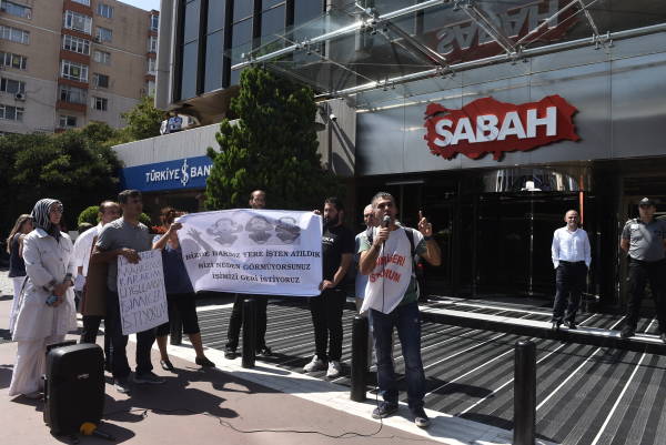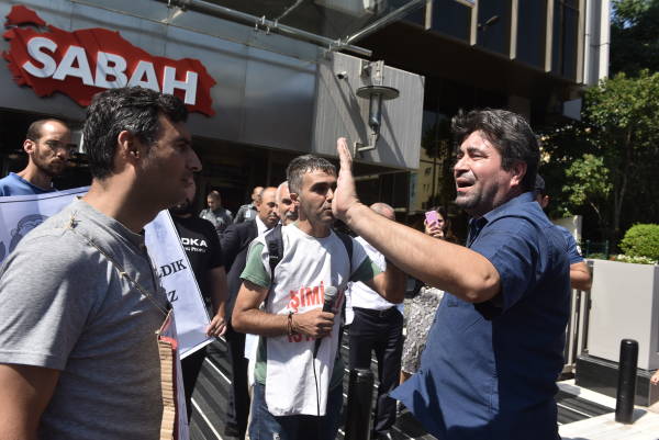 Öte yandan Sabah-ATV binası önünde açıklama yapan işçi ve emekçilere polis engel olmaya çalıştı. Bu keyfi engelli kabul etmeyen işçiler açıklamalarına devam etti.