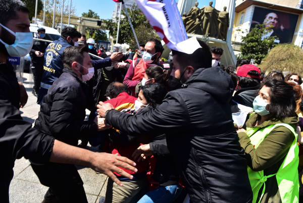 Direnişteki işçilerin 1 Mayıs kutlamalarına çağrı için Bakırköy Özgürlük Meydanı’nda yapmak istediği açıklamaya polis saldırdı. Eylemden saatler öncesi meydanı abluka altına alan polis, meydanda adeta OHAL İlan etti. HDP Milletvekili Musa Piroğlu, HDP Bakırköy ilçe eşbaşkanı Yonca Yongöz , TÖP Genel Başkanı Perihan Koca, SODAP Sözcüsü Sevtap Akdağ, sendika yöneticilerin destek için hazır bulunduğu eylemde, açıklama yapmak isteyen işçilere polis engel oldu. Gerekçe olarak da ise kaymakam yasağı gösterildi. Bu keyfi uygulamayı protesto eden işçilere polis saldırdı. Çok sayıda kişiyi darp ederek gözaltına alan polis, basın mensuplarını da itekleyerek zorla alandan çıkardı.
