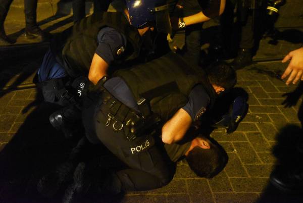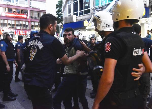 İçi biber gazı dolu plastik mermilerle saldıran polise kitle şişe ve taş atarak karşılık verdi. Çok sayıda kişinin darp ederek gözaltına aldığı olaylar esnasında kimliği bilinmeyen 40 yaşlarındaki bir şahıs bıçaklandı. Neden bıçaklandığı öğrenilemeyen şahıs, ambülansla hastaneye kaldırıldı.