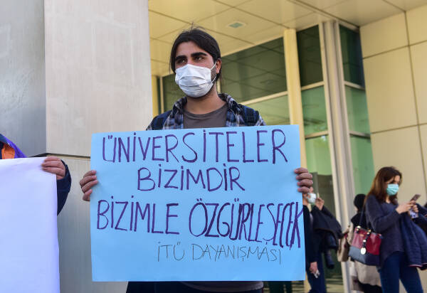 İstanbul, Boğaziçi, Yıldız Teknik ve Koç üniversitelerinden desteğe gelen öğrencilerin teker teker söz alıp arkadaşlarıyla dayanışma mesajı verdiği eylemde, İTÜ öğrenciler adına açıklamayı Turan Uykun okudu.
