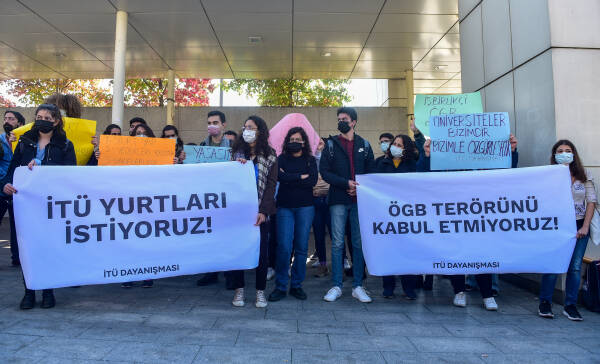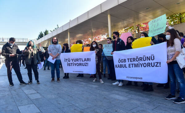 Eylemde, “ÖGB terörünü kabul etmiyoruz”, “İTÜ yurtları istiyoruz” yazılı pankartlar ile “İşbirlikçi ÖGB istemiyoruz” dövizleri taşındı.