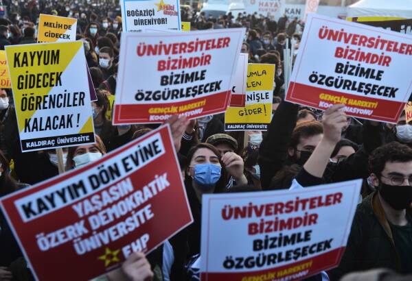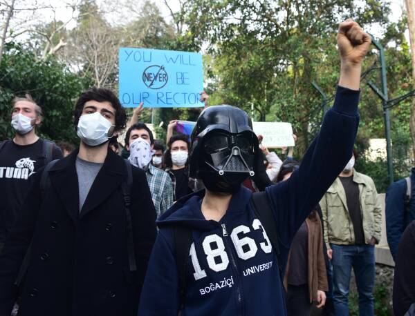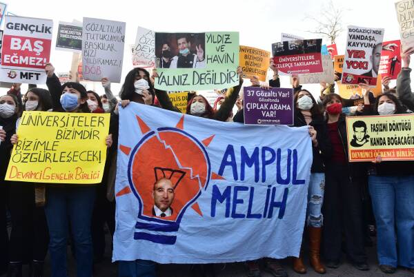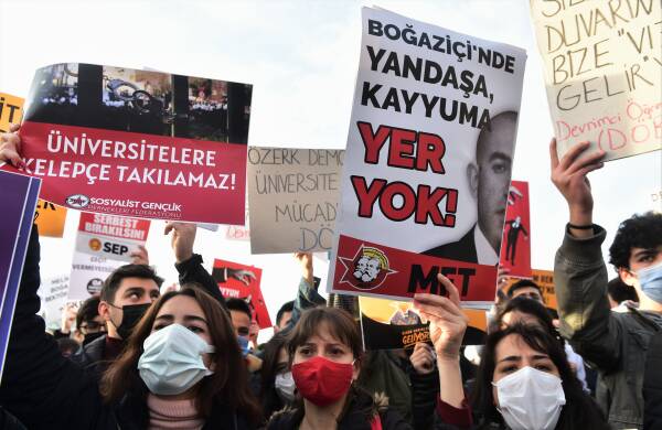 AKP'li Melih Bulu'nun Cumhurbaşkanlığı Kararnamesiyle Boğaziçi Üniversitesi'ne rektör olarak atanmasına karşı tepkiler çığ gibi büyüyor. Rektörün atanmasının üçüncü gününde sokaklara akın eden Boğaziçi öğrencileri, kayyum rektör istifa edene kadar mücadeleye devam vurgusunda bulundu.