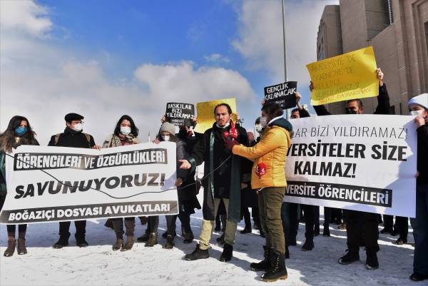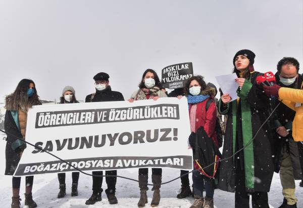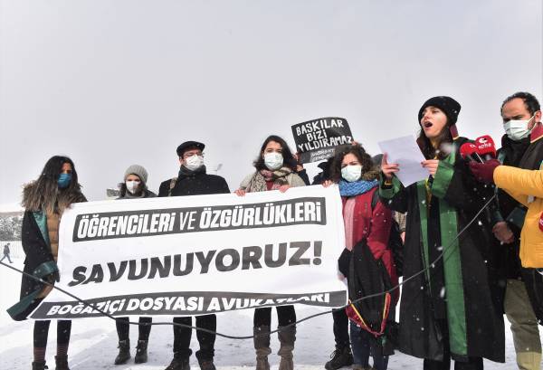 Konuşmaların ardından öğrenciler adın suç duyurusunda bulunan Boğaziçi Dosyası Avukatlarından Seher Eriş, öğrencilerin gözaltına yaşadığı işkenceyi anımsatarak, meşru protesto hakkının açık bir şekilde ihlal edildiğini ifade etti.