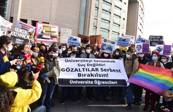 Boğaziçi kayyum rektör protestoları sonrası gözaltına alınan 37 kişinden 24’ü savcılığa çıkartıldığı saatlerde Çağlayan’da bir araya gelen üniversite öğrencileri eylem düzenledi.