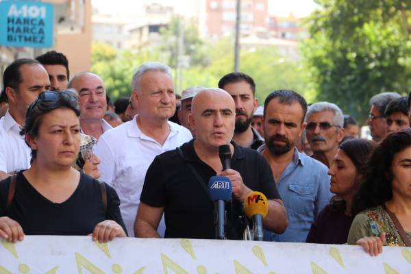 Mezopotamya Kültür Merkezi (MKM) sanatçılarının da katıldığı eylemde “Direne direne kazanacağız” sloganı atıldı.