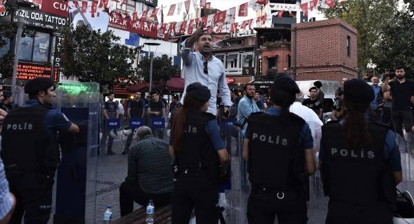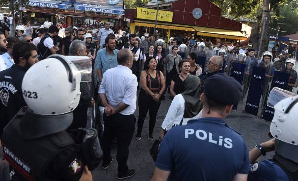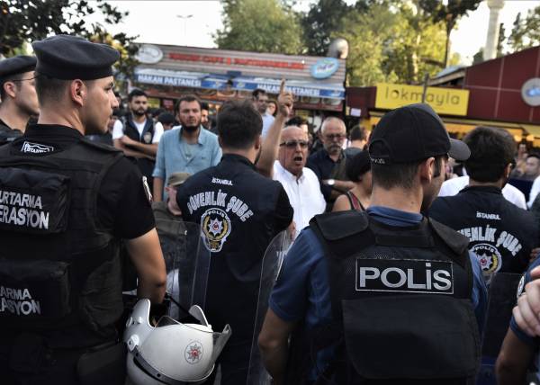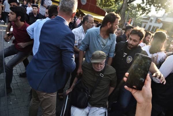 HDP İstanbul İl Örgütü’nün öncülüğünde Amed, Van ve Mardin belediyelerinin AKP/MHP tarafından gasp edilmesine karşı Beşiktaş Hakan Pastanesi önünde yapılmak istenilen açıklamaya polis izin vermedi. HDP milletvekillerinin konuşmaya başlamasıyla müdahale anonsu yapan polis, vekillere eşlik eden HDP yönetici ve üyelerini zorla alandan uzaklaştırmak istedi.