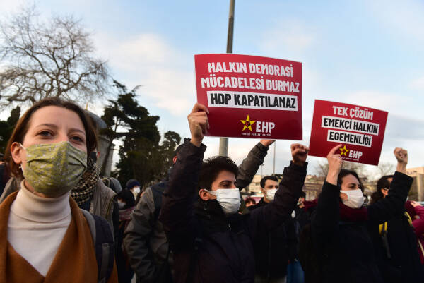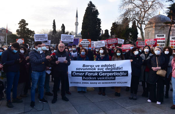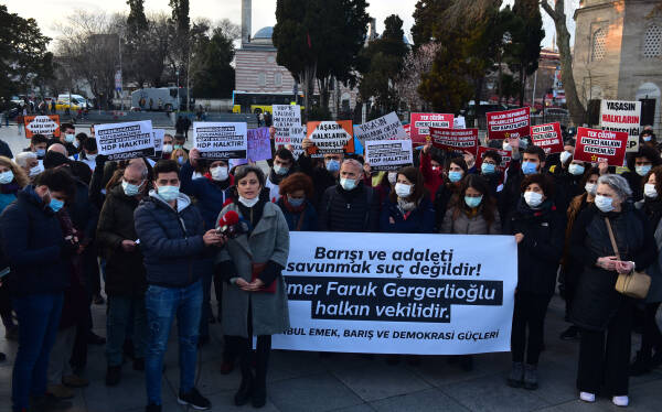 İstanbul Emek Barış ve Demokrasi Güçleri, HDP hakkında açılan kapatma davası ve Ömer Faruk Gergerlioğlu'nun vekilliğin düşürülmesini protesto etti: Sivil darbeye karşı halk iradesini, demokrasiyi savunacağız.