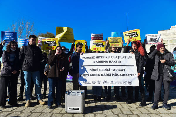 Van’da, Dersim’de, İstanbul’da birçok şehirde ve birçok öğrenci yurdunda, sokaklarda, kampüslerde öğrencilerin barınma hakkı için mücadele ettiğini anımsatan Ekici, “Buradan bir kaz daha haykırıyoruz, parasız, nitelikli, ulaşılabilir eğitim hakkımıza, barınma hakkımıza sahip çıkacağız, dinci-gerici tarikat, cemaat ve vakıf yurtları kapatılsın. Eğitimde ve toplumsal yaşamın her alanında dinci-gerici kurumlar lağvedilsin” dedi.