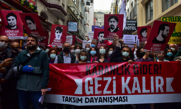 Sık sık, “Her yer Taksim her yer direniş”, “Çetelerden hesabı emekçiler soracak”, “Gezi umuttur yargılanamaz” sloganlarının atıldığı anmada, Gezi direnişinde yaşamını yitiren gençlerin ismi teker teker okunarak, “Yaşıyor” diye haykırıldı.