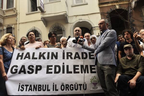HDP İstanbul İl Örgütü'nün çağrısıyla, Amed Van, Mardin büyükşehir belediyelerine kayyum atanarak halkın iradesinin gasp edilmesi protesto edildi. Polis ablukası altında gerçekleştirilen kitlesel açıklamaya, HDP milletvekilleri Musa Piroğlu, Erol Katırcıoğlu, Hasan Özgüneş katıldı. “Halkın iradesi gasp edilemez” yazılı pankartının açıldığı eylemde ilk konuşma HDP İstanbul İl Eşbaşkanı Cengiz Çiçek tarafından yapıldı.