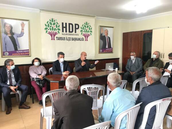 Ardından HDP Tarsus İlçe Eşbaşkanlığına geçen heyet burada halk buluşmasına katıldı. Buluşmaya katılanlar, “Herkes gibi Kürtlerin de ekonomik sorunları var ama ayrıca bizler varlık yokluk mücadelesi veriyoruz. Birlik ve beraberlikle mücadelemiz devam etmeli” vurgusunu yaptı.