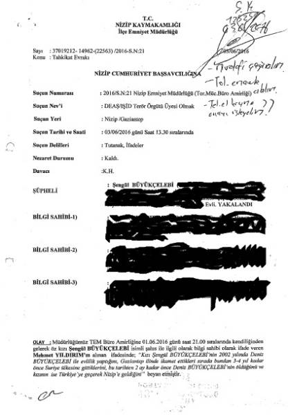 Büyükçelebi, ifadesinde DAİŞ’in Türkiye ve Kuzey Kürdistan’daki saldırılarını organize eden İlhami Balı, Nusret Yılmaz, Yunus Durmaz ve Ahmet Güneş gibi firari isimleri Suriye’ye geçmeden önce de tanıdığını ve sınır geçişleri başta olmak üzere çeşitli faaliyetlerde aktif rol aldıklarını söyledi. Eşinin de Balı’nın yardımcısı olduğunu itiraf etti.