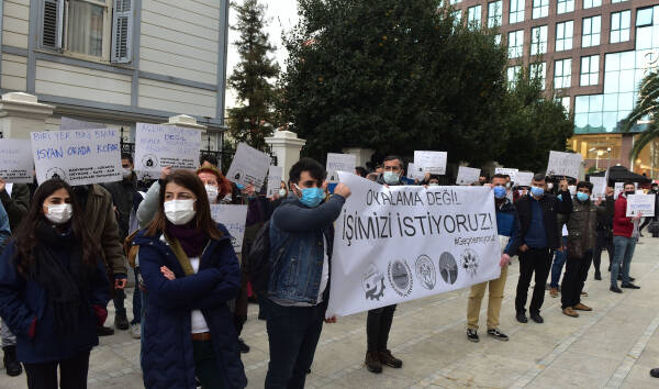HDP Milletvekili Züleyha Gülüm ve BEKSAV sanatçılarının katılımıyla yapılan eylemde, “Oyalama değil işimizi istiyoruz” yazılı pankart yanı sıra, “Geçinemiyoruz”, “Hesabı biz ödemeyeceğiz”, “Patronunun sözlerine itirazım var” dövizleri taşındı.