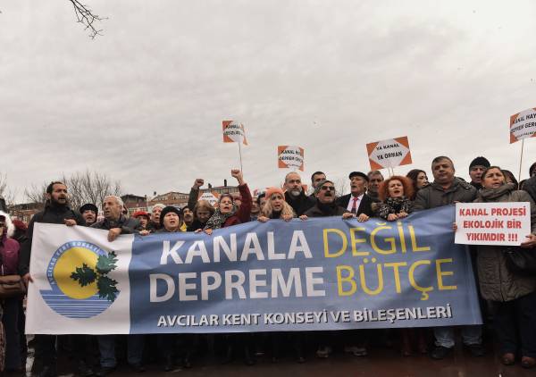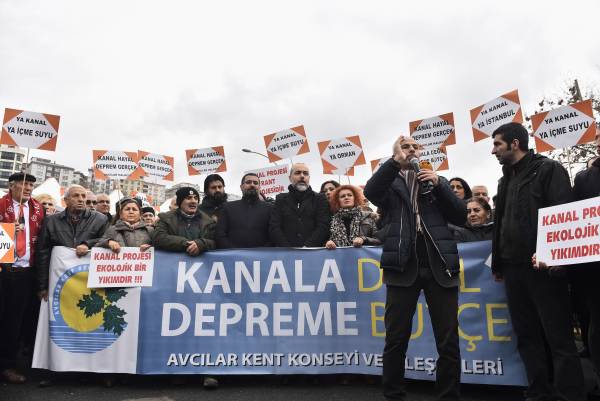 “Kanal değil depreme bütçe” yazılı pankartın açıldığı eylemde, sık sık, “Kanala değil emekçiye bütçe”, “Kanala değil eğitime bütçe” sloganları atıldı.