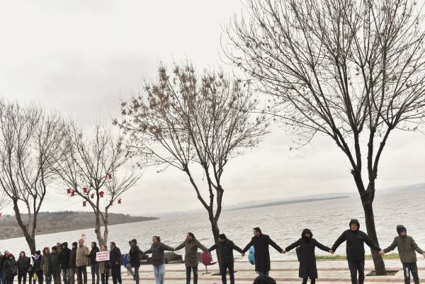 Açıklamanın ardından ele ele verip göl boyunca insan zinciri oluşturan katılımcılar, attıkları “ Bu daha başlangıç mücadeleye devam” sloganlarıyla eyleme son verdi.