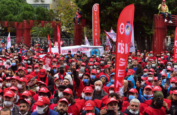 DİSK’in başını çektiği yürüyüşte, direnişteki işçiler ve emekçiler ön saflarda yerini aldı. Çok sayıda siyasi parti ve demokratik kitle örgütünün katıldığı mitingde, üniversiteli ve liseli gençlerin de ilgisi büyüktü. Sık sık, “ Hükümet istifa”, “Asgari değil insanca yaşam”, “ İşçilerin birliği sermayeyi yenecek”, “ Sermaye çöpe, iktidar işçilere”, “ Direne direne kazanacağız”, “ Genel grev genel direniş” sloganlarını atan binler, miting alanına sığmadı.