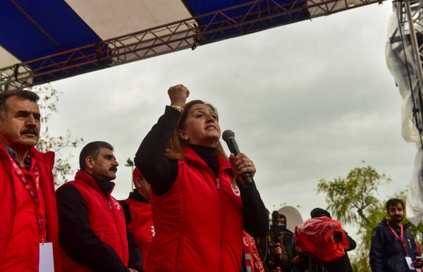 İşçi sınıfının yaşadığı gelir kaybının telafi etmenin en önemli yolunun, sendika ve grev hakkı olduğunun altını çizen Çerkezoğlu, “O zaman buradan bir kez daha haykırıyoruz; yoksulluğa ve emeğimizin ucuzlatılmasına teslim olmayacağız. Biz çalışıyoruz, biz üretiyoruz, Türkiye’ye büyüdüğüyse hakkımızı istiyoruz. Hep birlikte omuz omuza, bu ülkenin tüm değerlerini ve güzelliklerini üretenler olarak kuracağız. İşçiler, emekçiler, kadınlar, gençler bu ülkenin gerçek sahipleri olarak kuracağız” diye noktaladı.