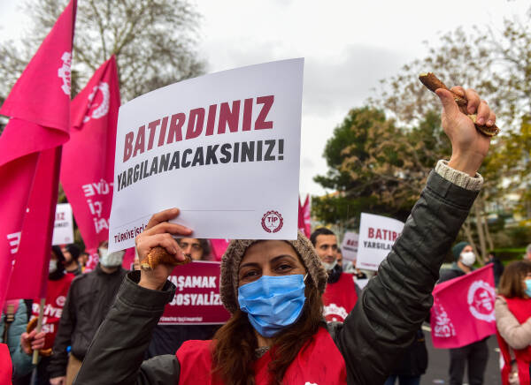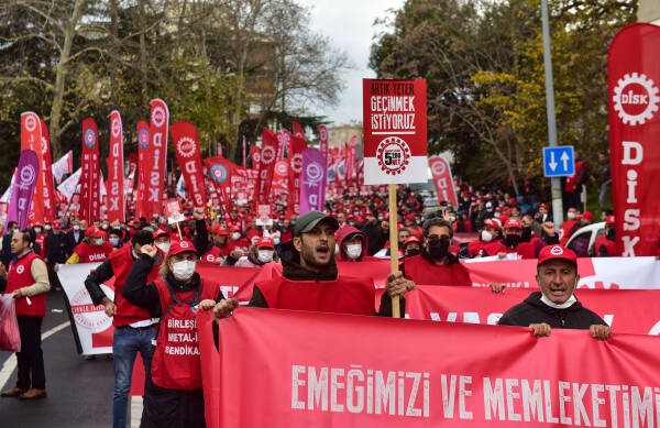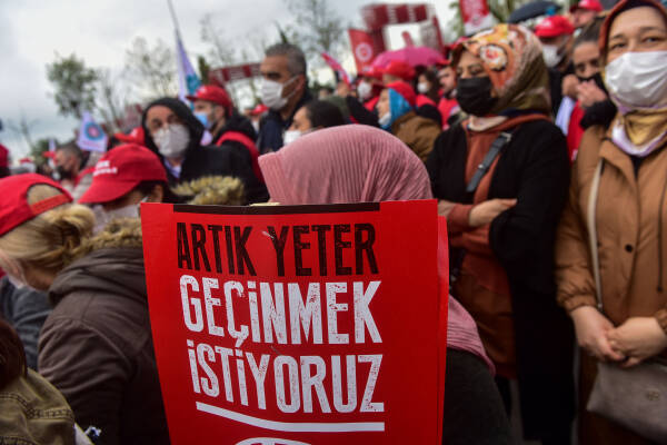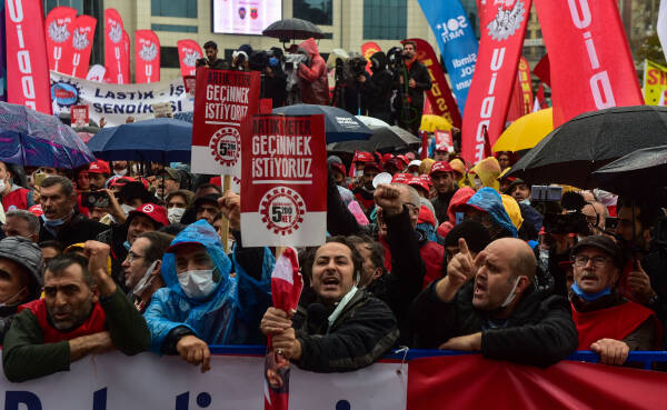 “Asgari değil insanca yaşam” diye haykıran binler, hükümeti istifaya çağırdı. Yağmura rağmen sabah erken saatlerinde Marmaray’ın Başak durağı önünde bir araya gelen kitle, kortejler halinde miting alanına yürüdü.
