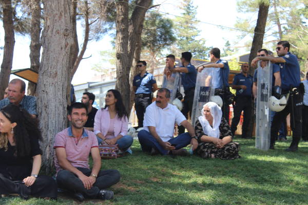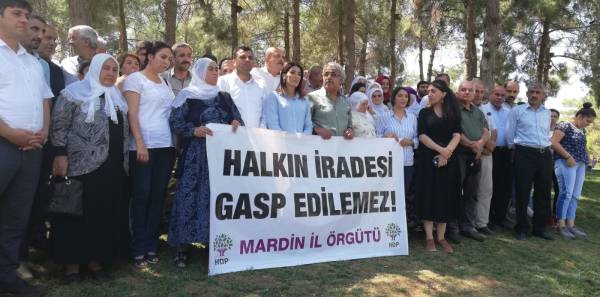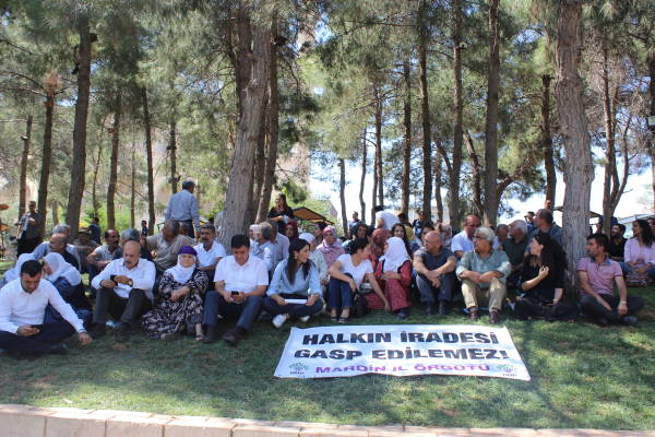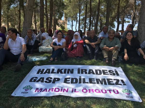 Halkların Demokratik Partisi (HDP) Mardin İl Örgütü ve HDP'li milletvekillerinin aralarında olduğu eylemciler, Amed, Van ve Mardin büyükşehir belediyelerinin gasp edilmesine karşı 18’inci kez bir araya geldi.