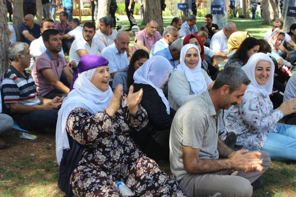 Yoğun polisiye tedbirler ve baskılara rağmen Karayolları Parkı'nın girişinde oturan HDP'liler, şarkılar eşliğinde oturma eylemini sürdürdü.