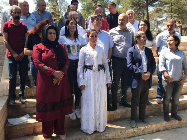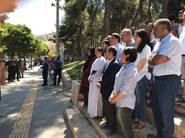 Eylemde sık sık “Mêrdîn rûmeta me ye”, “Direne direne kazanacağız” ve “Susmuyoruz, korkmuyoruz, itaat etmiyoruz” sloganları atan grup adına açıklamayı HDP Batman Milletvekili Mehmet Rüştü Tiryaki yaptı.