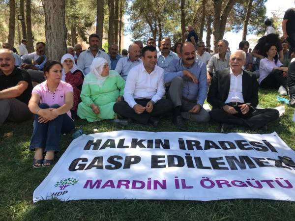 HDP’liler Karayolları Parkı'nın girişinde oturarak şarkılar eşliğinde eylemlerini sürdürürken, 17’inci gün oturma eylemine Mardin Büyükşehir Eşbaşkanları Ahmet Türk ve Figen Altındağ, DTK Eş Sözcüsü ve HDP Milletvekili Merdan Öztürk de katıldı.