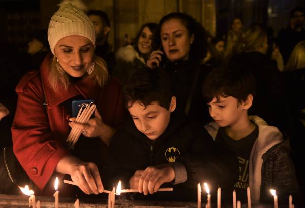 İstanbul’da Noel kutlamalarının gerçekleştirildiği Saint Antoine Kilisesi’nde eller barış için birleşti.