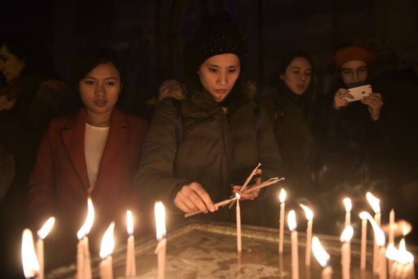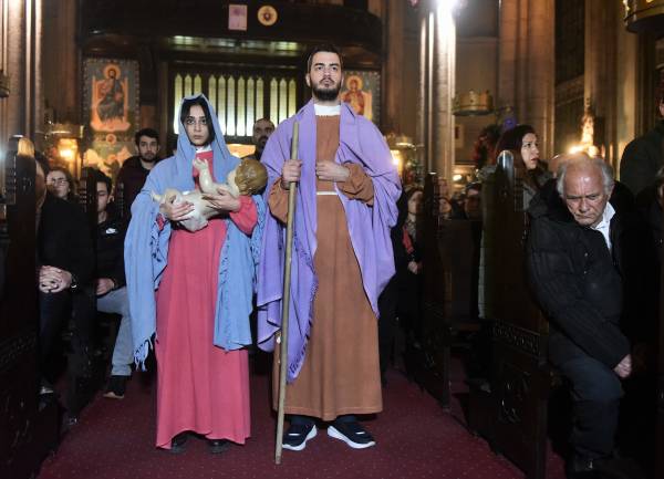 Kilisenin girişinde süslenmiş görkemli Noel ağacının büyük ilgi gördüğü kutlamalara, Hıristiyanların coşkusuna Müslümanlar da eşlik etti. Hep bir ağızdan ayinlerin okunduğu Noel kutlamasında, 7’den 70’e insanlar, mumlar yakıp savaşsız, sömürüsüz, huzurlu bir dünya için dua etti.