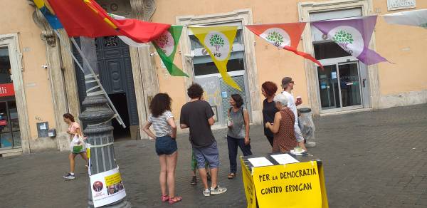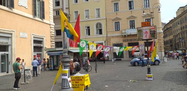 Roma’da Kürtler ve dostları, iki günlük bir çadır eylemi başlattı. Bu Pazartesi saat 11.00’de başlayan eylem, 19.00’a kadar sürecek. Salı günü de aynı saatler arasında çadır kurularak eylem sürdürülecek.