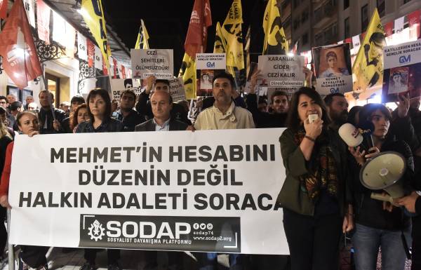 Sosyalist Dayanışma Platformu (SODAP), Gezi Direnişi’nde yaşamını yitiren Mehmet Ayvalıtaş’ın davasında sanıklara verilen beraat kararını protesto etti. Kadıköy Süreyya Operası önünde ve polis ablukası altında gerçekleşen eyleme, Mehmet Ayvalıtaş’ın babası Ali Ayvalıtaş, HDP Milletvekilli Serpil Kemalbay, demokratik kitle örgütleri ve siyasi parti temsilcileri katıldı. Eylemde, “Mehmet Ayvalıtaş’ın hesabını düzenin değil halkın adaleti soracak” yazılı pankart açıldı. “Gezi şehitleri ölümsüzdür”, “Adalet sokakta” dövizlerin taşındı. Sık sık, “Ya adalet ya kıyamet”, “Gezi şehitleri ölümsüzdür” sloganlarını atıldığı protestoda ilk konuşma HDP Milletvekilli Serpil Kemalbay tarafından yapıldı.