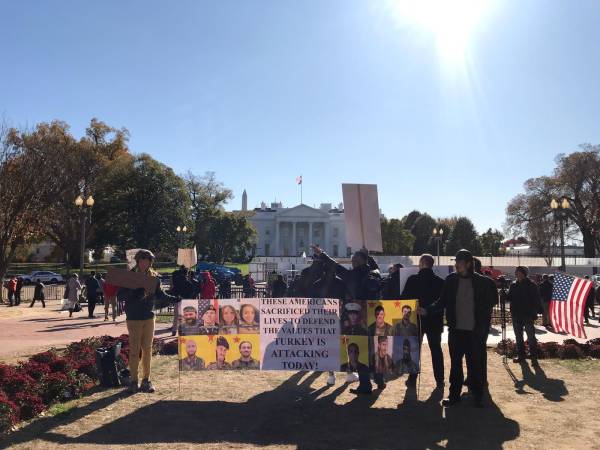 Türk Cumhurbaşkanı R. Tayyip Erdoğan, ABD Başkanı Donald Trump ile görüştüğü esnada yüzlerce kişinin katılımı ile bir protesto eylemi düzenlendi.