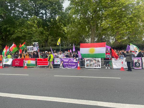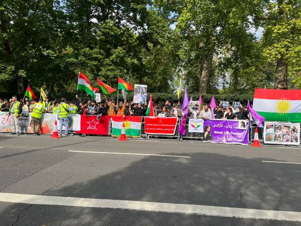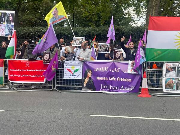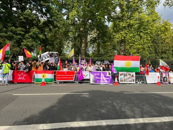 Jiyan Kadın Meclisi öncülüğünde İran Londra Büyükelçiliği önünde bir araya gelen kadınlar, "Kadın düşmanı İran devletinin hayatın her alanında kadınlara işkence etmesi normalleşirken, kadına yönelik insanlık dışı uygulamalar sistemleştirilip meşrulaştırılırken, baskı ve katliamlar arttı" açıklamasında bulundu.
