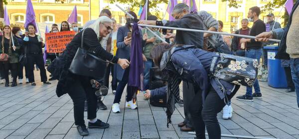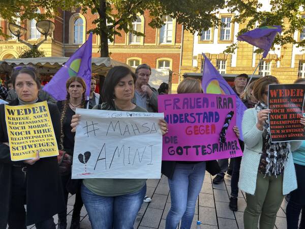 Sosyalist Kadınlar Birliği, Kürt Kadın Hareketi, Alevi Kadın hareketi ve Alman kadın örgütlerinin katıldığı mitinge aralarında Irak'tan gelen kadınların olduğu bine yakın kişi vardı.