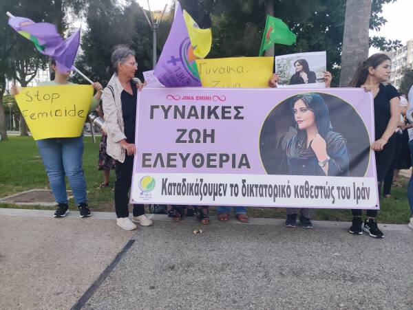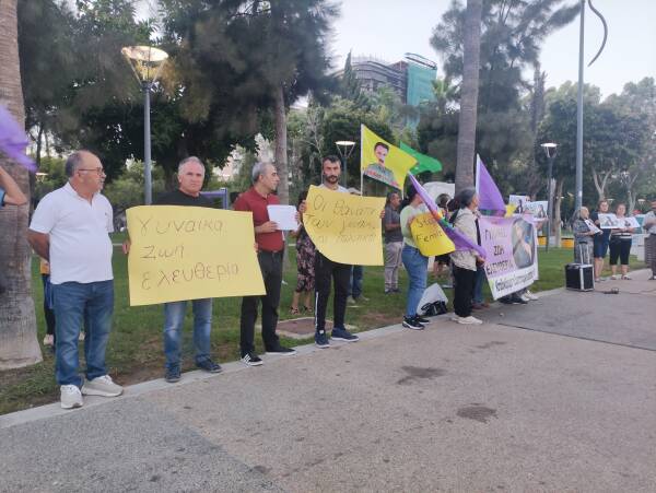 Kıbrıs Kürt Kadın İnisiyatifi öncülüğünde İran ahlak polisleri tarafından katledilen Jîna Emînî için, Kıbrıs'ın Limasol kentinin en işlek sahili olan Moloz Park’ta kadınlar bir araya geldi.