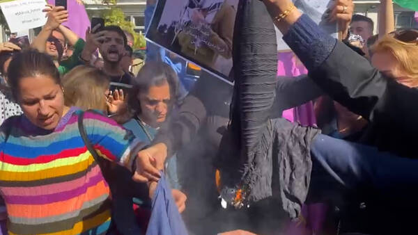 Kürt kadını Jîna (Mehsa) Emînî’nin İran rejiminin “Ahlak polisleri” tarafından gözaltına alarak katledilmesi Londra'daki İran Büyükelçiliği önünde kadınlar tarafından protesto edildi.