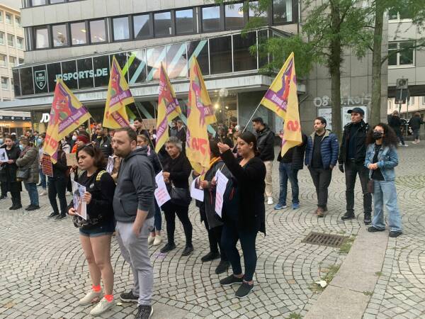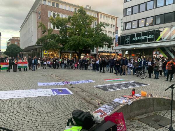 Almanya’nın Duisburg kentinde Duisburg Asya Yüksel Kadın Meclisi’nin çağrısıyla Kürt, Fars ve Alman kadınlar, saat 17:00’da Duisburg Forum önünde Doğu Kürdistanlı Jîna Emînî’nin İran ahlak polisleri tarafından ve Azerbaycan ordusu tarafından da Ermeni kadın savaşçı Anush Abetyan’ın işkence ile katledilmesini bir miting ile protesto etti.