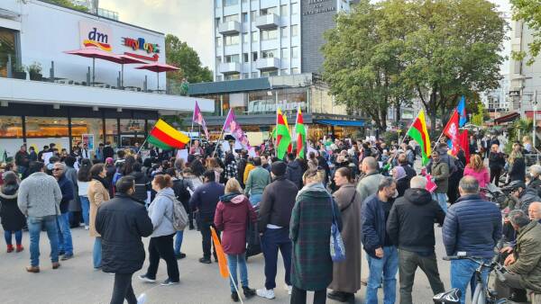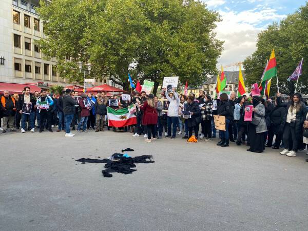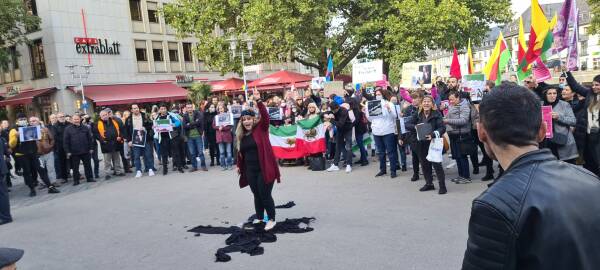 Almanya’nın Siegen kentinde Pakize Nayır Kadın Meclisi’nin çağrısı üzerine farklı uluslardan yüzlerce kadın, Jîna Emînî’nin katledilmesini kınamak ve ülkedeki isyana ses vermek amacıyla Siegbrücke meydanında bir araya geldi.