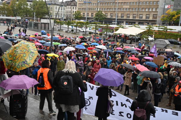 Yapılan konuşmanın ardından "Eşit işe eşit ücret" talebiyle ve AVS 21 reformunun geri çekilmesine yönelik atılan sloganlarla kent merkezine yürüyüşe geçildi.