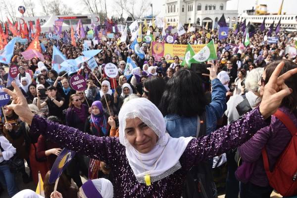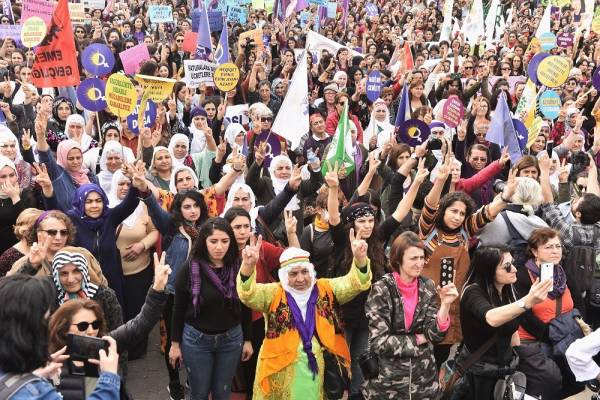 “Biz kadınlar tüm dünyada ayaktayız! Bu 8 Mart’ta da meydanlarda, sokaklarda, işyerlerinde, okullarda, evlerde daha iyi bir yaşam için, eşitlik ve özgürlük için tüm baskılara ve yasaklara rağmen birbirimizden güç alarak mücadele etmeye devam ediyoruz.