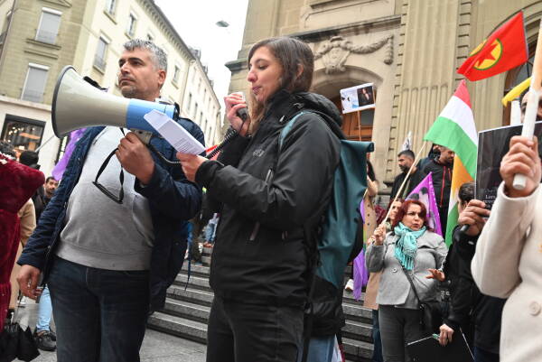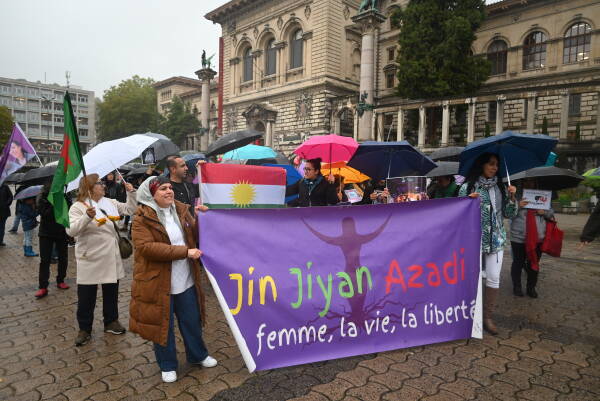 Riponne meydanında bir araya gelen Kürdistanlı, İranlı, Türkiyeli ve İsviçreli her kesimden halklar, Jîna Emînî şahsında katledilen kadınları anmak ve İran'da sürdürülen direnişe destek vermek için "Jin, Jiyan, Azadî" sloganı atarak yürüyüşe geçti.