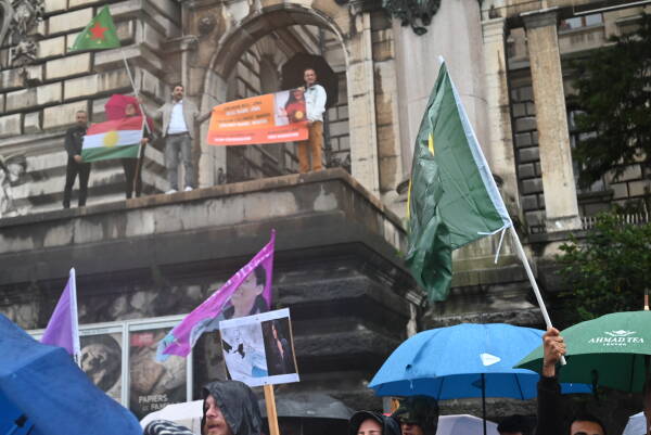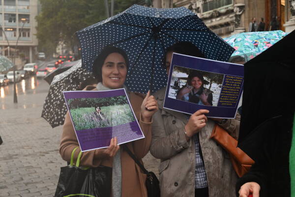 Üzerinde "Jin, Jiyan, Azadî" yazılı pankartın yanı sıra Jîna Emînî'nin posterleri taşındı. Place de St Laurant meydanına ulaşan kitle burada bir dakikalık saygı duruşu sonrasında mitinge başladı.
