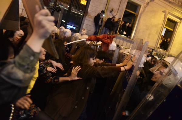 HDP milletvekilleri Leyla Güven, Züleyha Gülüm, Oya Ersoy, CHP İstanbul İl Başkanı Canan Kaftancıoğlu’nun katıldığı yürüyüşün önü polis tarafından durdurdu. “Susmuyoruz, korkmuyoruz, itaat etmiyoruz”, “Geceleri de sokakları da meydanları da terk etmiyoruz”, "Yükselt yükselt isyan sesini yükselt" sloganları eşliğinde polis ablukasını aşmaya çalışan kadınlara polis saldırdı. Saatlerce süren arbedede polisin sıktığı biber gazından çok sayıda kişi fenalık geçirdi. Saldırılara rağmen direnmekten vazgeçmeyen kadınlar ve LGBTİ bireyleri saatlerce önlerindeki polis ablukasını aşmak için mücadele etti. Kadınları kalkanlarla itekleyen çevik kuvvet ekiplerinin “Vur, vur” diye tempo tutmaları ise dikkat çekti.