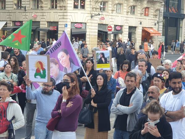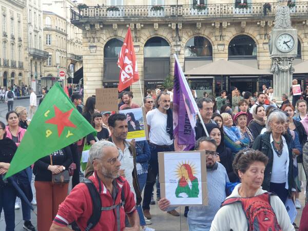 Fransa’nın Bordeaux kentinde bugün saat 15.30 da Îran devlet güçlerince katledilen Jina Emini için Grande Théâtre meydanında bir miting gerçekleştirildi. Avrupa Kürt Kadın Hareketi TJK-E öncülüğündü gerçekleştirilen eyleme İran ve Fransızlar da katıldı. Eylemde Fransızca bildirililer de okundu.