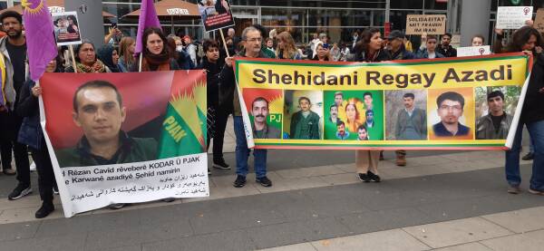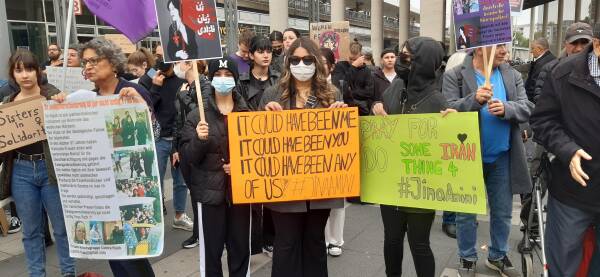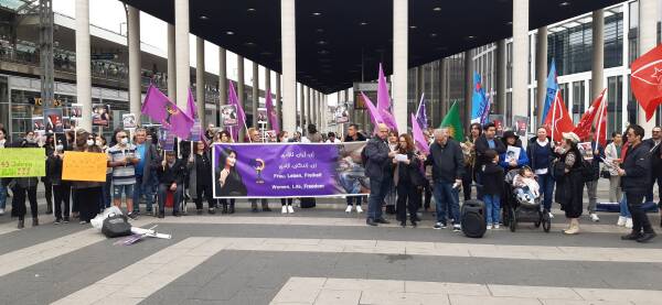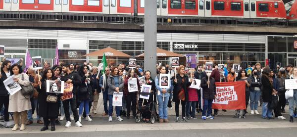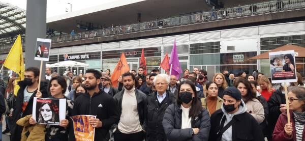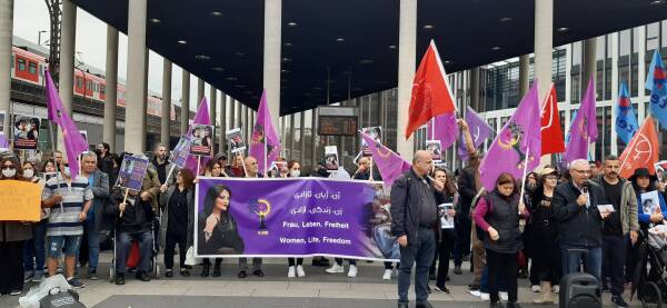 Jina Emini'nin katledilmesi Almanya’nın Köln kentindeki ana tren istasyonunda yapılan eylem ile kınandı. Eylem özgürlük mücadelesinde şehit düşenler için yapılan saygı duruşu ile başladı. PJAK, KJAR, Köln Viyan Kadın Meclisi ve Komala'nın organize ettiği mitinge Kürt, Alman, Fars ve Türkiye devrimci sol hareketlerinden kadınlar katıldı. Genç kadınların katılımının yoğun olduğu eylemde Jina Emini'nin katledilmesini protesto eden pankart, poster ve dövizler taşındı. Eylemde Soranca şiirler okundu, şarkı dinletisi yapıldı. Bir grup Kürt kadını da Jina'nın saçlarını temsilen kadınların saçlarının tarandığı teatral bir gösteri gerçekleştirdi. Eylemde sık sık “Jin Jiyan Azadi” sloganı atıldı.