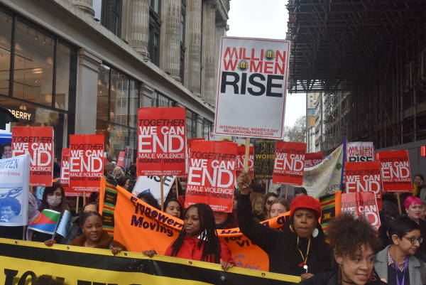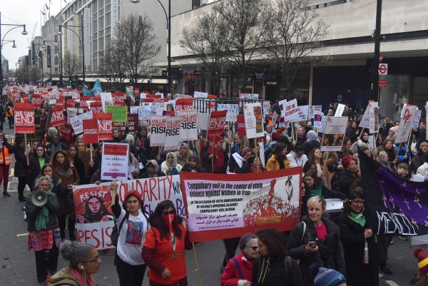 Milion Women Rise öncülüğünde Londra Born Street üzerinde bir araya gelen binlerce kadın 8 Mart Dünya Emekçi Kadınlar Günü’nü kutladı. Meksika’dan Kürdistan’a Türkiye’den Arjantin’e kadar birçok kesimden ve onlarca kadın örgütünün katıldığı 8 Mart buluşmasında rengarenk görüntüler oluştu. Kadınlar, yaşadığı şiddeti ve eşitsizliği pankart ve dövizlere yansıtırken, “Biz birlik olursak şiddete son veririz”, ‘Hemen adalet istiyoruz, kadınların birleşmesi engellenemez, nereye gidersek gidelim ne giyersek giyelim evet- evet demektir hayır ise hayır, güç kadında”, “Kadın cinayetlerine karşı birleşiyoruz”, “Şiddete hayır”, şeklinde sloganlar atıldı. Kadın örgütleri kendi renkleri ve ortak talepleri ile alandaki yerini alırken, Türkiye ve Kürdistan’daki kadın cinayetleri, politik kadın tutsaklar ve gazetecilere dönük baskılar da meydandaki taşınan dövizler ile dile getirildi. Kürdistan ve Türkiyeli kadınlar da alanda yerini alırken, Day-Mer, Sosyalist Kadınlar Birliği (SKB), Alevi Kadın Komisyonları, Kurd-AKAD ve Kürt kadın kurumları da kendi renkleri ve talepleri ile alandaki yerini aldı.