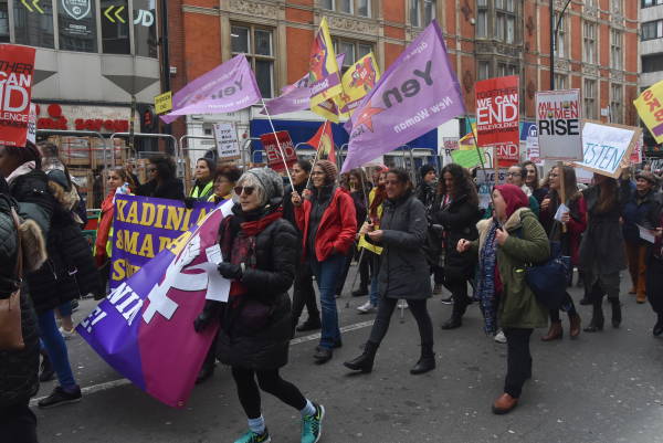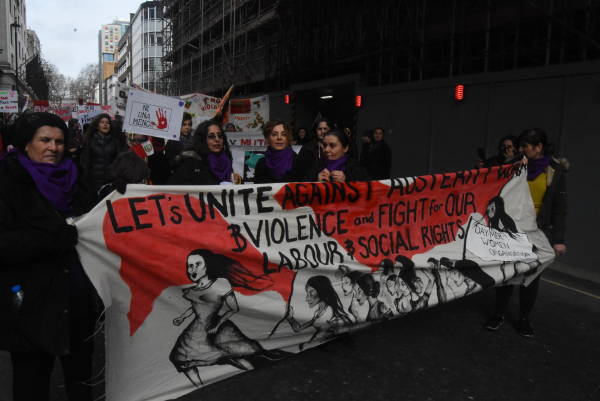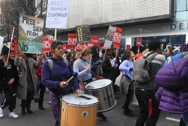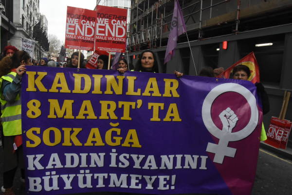 Londra’da bir araya gelen onlarca kadın örgütü ve binlerce kadın, polis-devlet şiddetine, eril sisteme, emek sömürüsüne, kadına yönelik şiddete karşı ve cinsiyet eşitlikçi bir sistem için 8 Mart’ı kutladı.