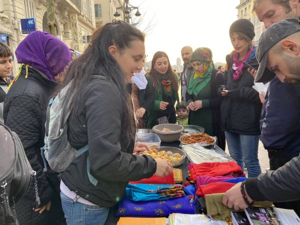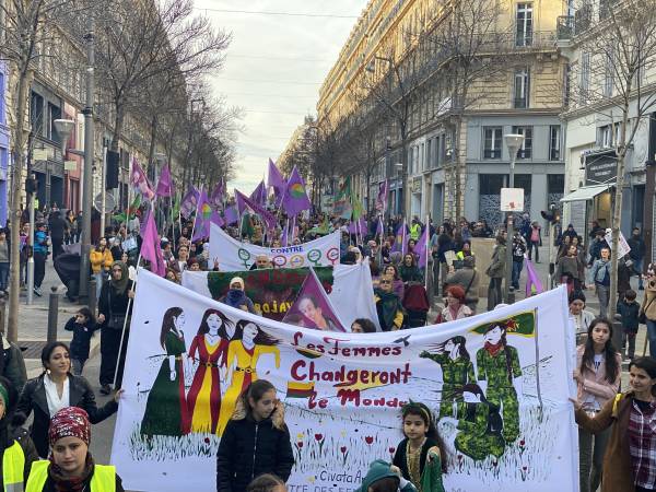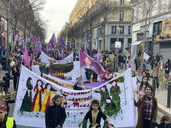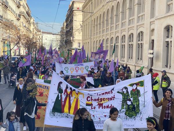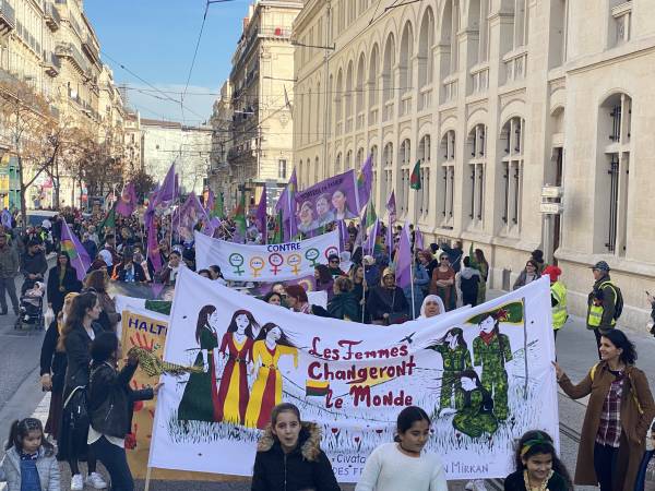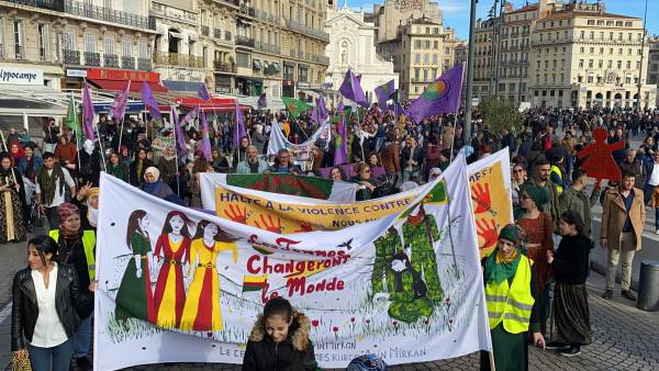 Fransa'nın Marsilya kentinde Arin Mirkan Kadın Meclisi öncülüğünde bir araya gelen binlerce kadın 8 Mart Dünya Emekçi Kadınlar Günü'nü coşkulu bir şekilde kutladı. Saat 14.00'da Canabiere meydanında toplanan binlerce kadın Marsilya Belediyesi'ne doğru yürüyüşe geçti.