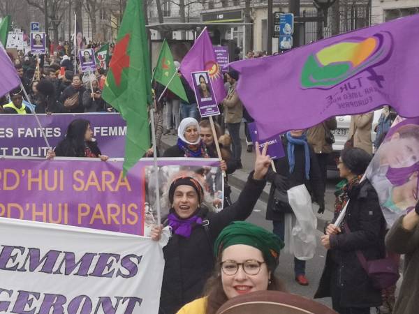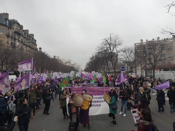 Fransa'nın Başkenti Paris'te kadınlar günü vesilesiyle binlerce kadın alanlara çıktı. Kürdistanlıların kendi renkleri, özgün pankartları ve sloganlarıyla katıldığı etkinlikte kadın özgürlük hareketini anlatan konuşmalar yapıldı.